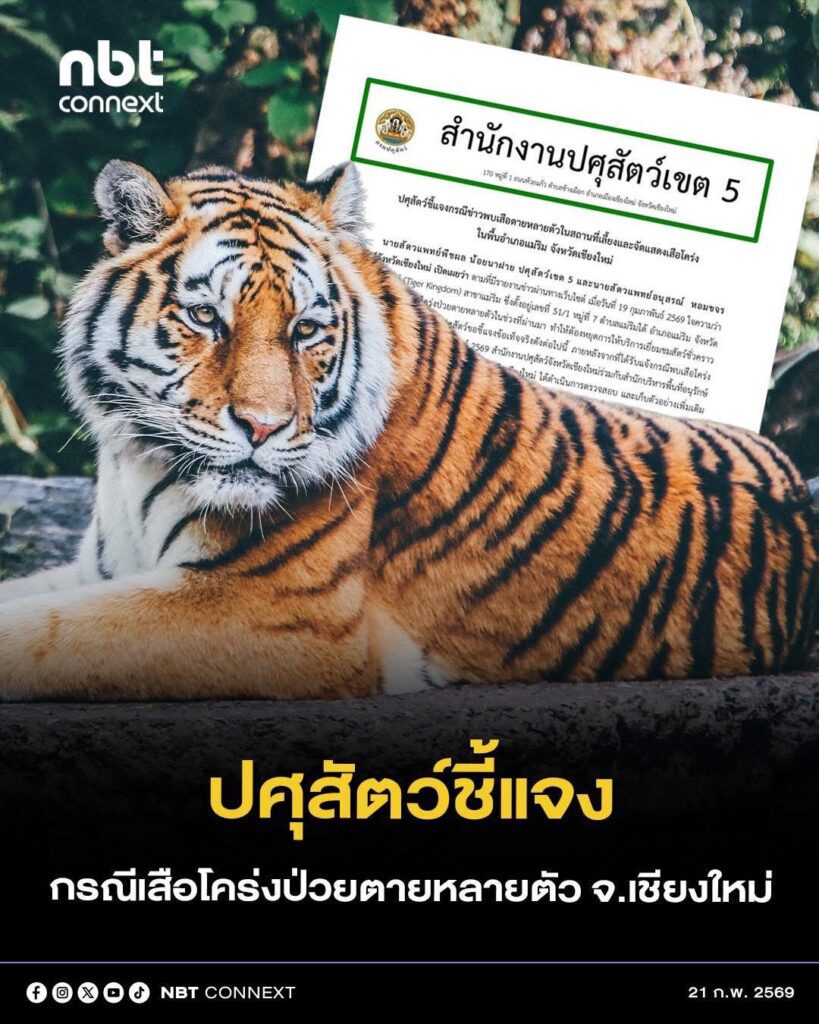 สำนักงานปศุสัตว์เชียงใหม่ ชี้แจงกรณีข่าวพบเสือตายหลายตัวในสถานที่เลี้ยงและจัดแสดงเสือโคร่งในพื้นอำเภ...