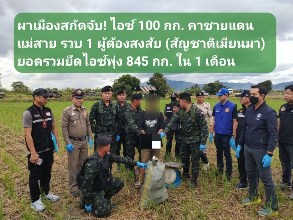 (มีคลิป) ผาเมืองสกัดจับ! ไอซ์ 100 กก. คาชายแดนแม่สาย รวบ 1 ผู้ต้องสงสัย (สัญชาติเมียนมา) ยอดรวมยึดไอ...