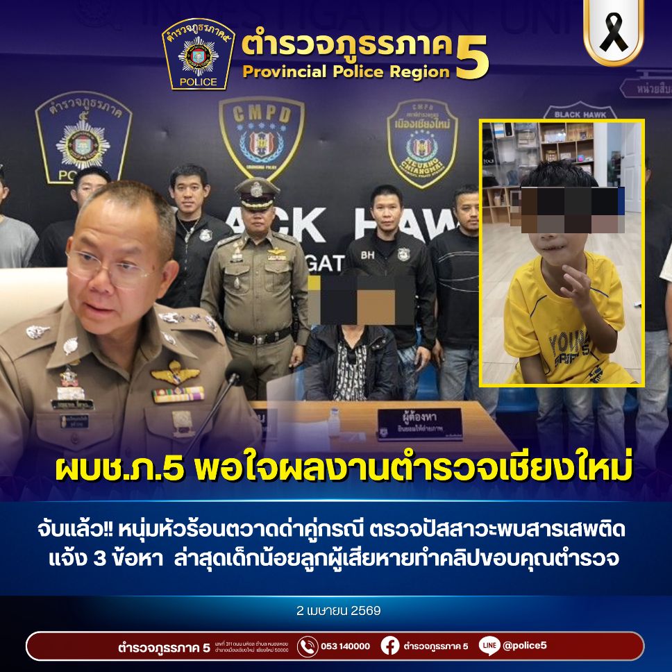 (มีคลิป) ผบช.ภ.5 พอใจผลงานตำรวจเชียงใหม่…จับแล้ว!!หนุ่มหัวร้อนตวาดด่าคู่กรณี ตรวจปัสสาวะพบสารเ...