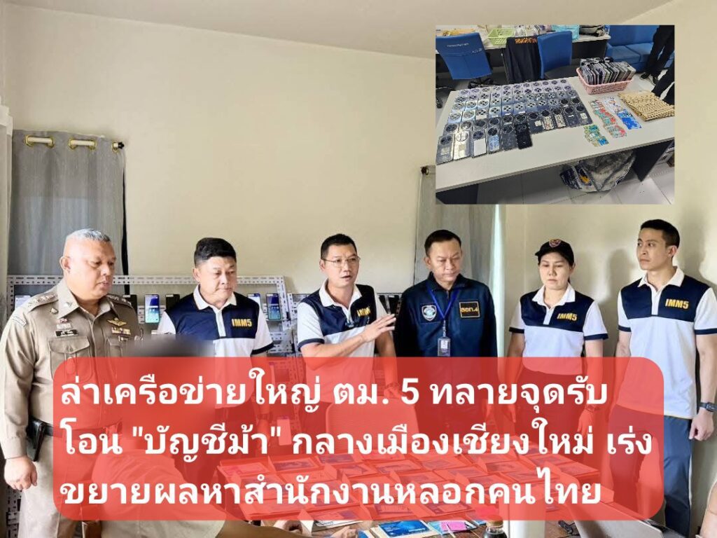 (มีคลิป) ล่าเครือข่ายใหญ่ ตม. 5 ทลายจุดรับโอน “บัญชีม้า” กลางเมืองเชียงใหม่ เร่งขยายผลหา...